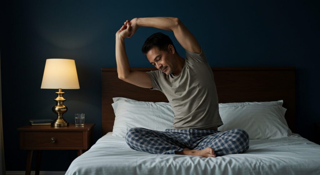寝る2時間ほど前に、ゆっくりと軽いストレッチをすることで、心身がリラックスし、血行が促進されます 。体が温まってから冷えるタイミングで自然な眠気が訪れるので、ぜひ試してみてください 。 - アロマや音楽で「睡眠モード」へ: